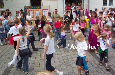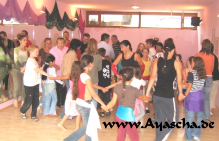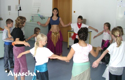 Klatschen und Singen werden spielerisch die Tänze des Orients erlebt