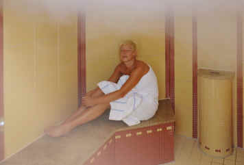 Das Hallenbad hat eine Beckengröße von 7x14m und eine Wassertemperatur von ca- 29°. Das moderne Bad bietet nicht nur zum Paddeln und Planschen Gelegenheit, sondern auch Schwimmer kommen hier auf Ihre Kosten. Ergonomische Sprudelliegen, Massagedüsen und eine Nacken-Schwallbrause rundes das umfangreiche Angebot von Heussers Badelandschaft ab.
