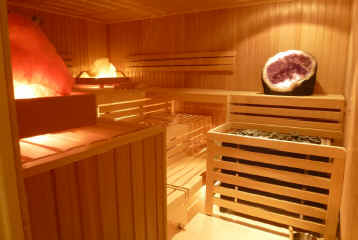 4 verschiedene Saunen und eine Infrarotkabine präsentieren sich an dieser Stelle in der WellnessOase. Hier finden wir eine Bio-Sauna mit Maximus-Ofen, eine klassische Finnische Sauna, ein Dampfbad, eine Sauna mit funkelnden Edelsteinen und die Infrarotsauna bieten eine abwechslungsreiche Kombination. Die Kneippanlage für wohltuende Fußbäder, Erlebnisduschen und ein Eisbrunnen zum Abkühlen ergänzen das Saunaangebot in Heusser`s WellnessOase optimal.
